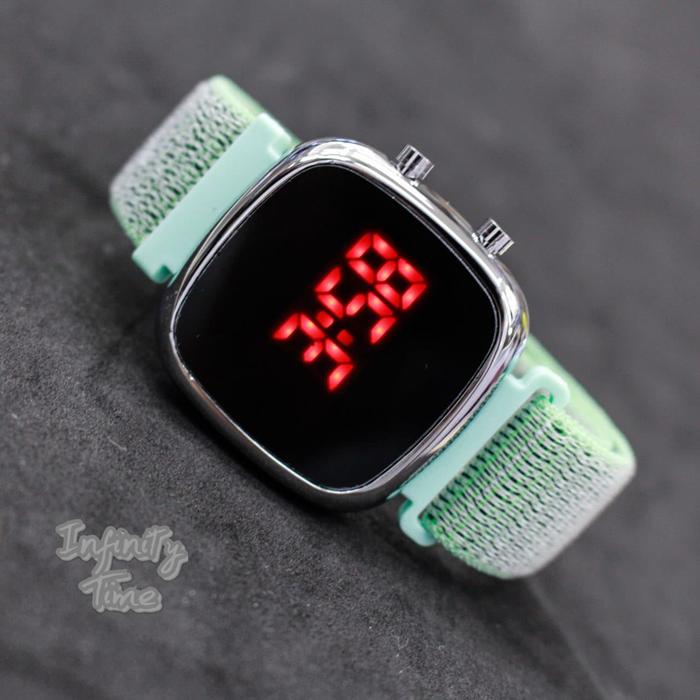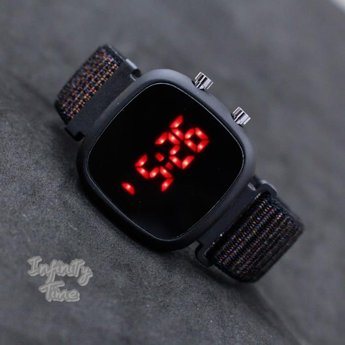 [Star] Jam Tangan LED Watch Nylon Oval Digital Tali Nylon - Hitam Full
