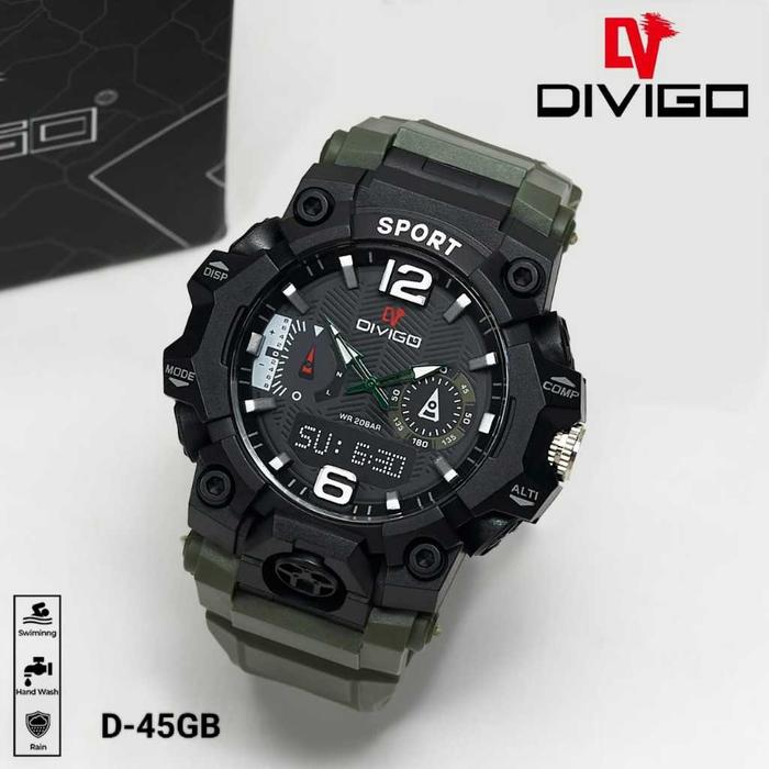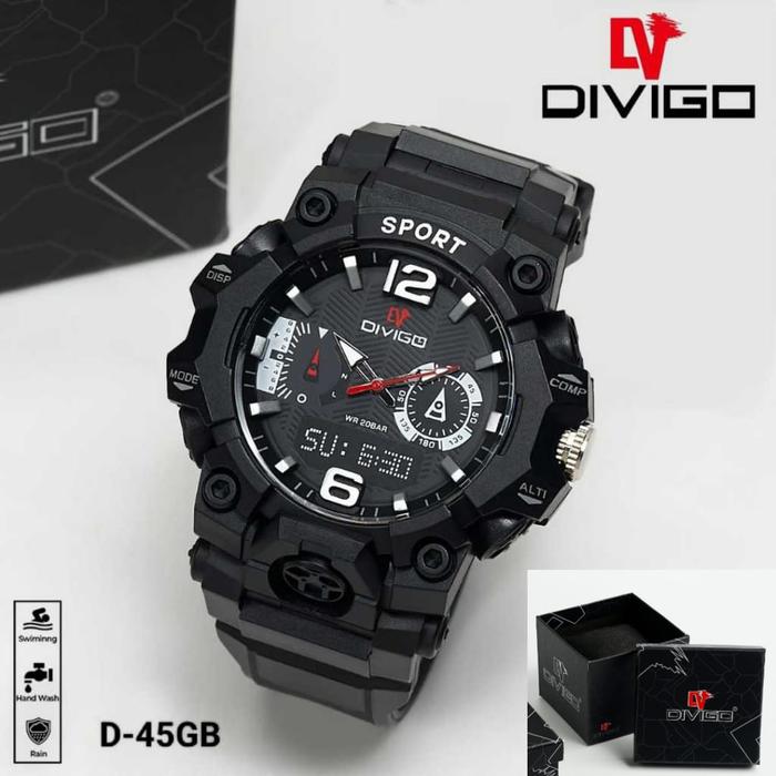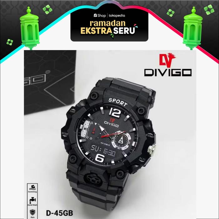 [Star] Jam tangan Pria DIVIGO Original Analog D-45GB Tali Rubber Tahan Air - MERAH TERMASUK BOX
