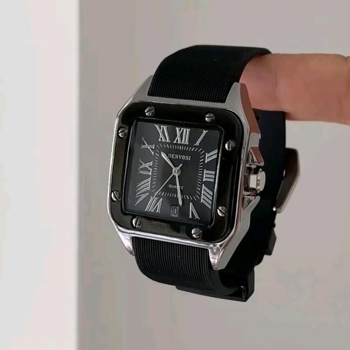 [Star] NEW!!! Jam tangan wanita dan pria tali rubber tebal lentur Free baterai cadangan (pinggir Hitam) Aksesoris Elegan