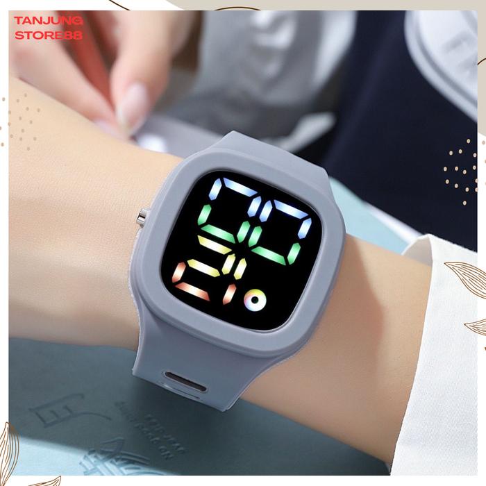 [Star] TJ Jam Tangan Pria Wanita LED Digital Rubber Tahan Air Electronic Fashion Couple Anak Remaja RM009 Karet - PUTIH