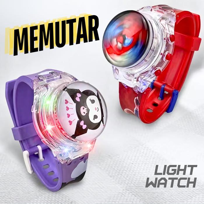 [Star] Jam Tangan Anak Karakter Musik Lampu Spin Putar LED Digital Watch Melody Kuromi Cinnamoroll Memutar Light Watch -