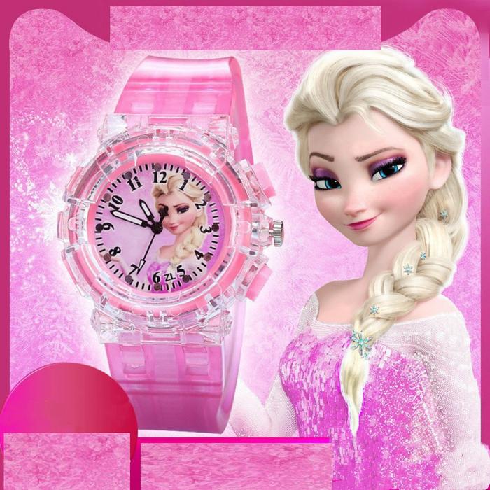 [Star] JAM TANGAN ANAK PEREMPUAN LAMPU WARNA WARNI KARAKTER FROZEN - PINK
