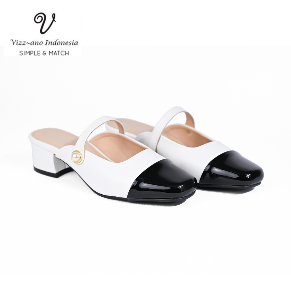 Vizzano Shoes Mary Jane Heels Pearl Two Tone Cantik Wanita Hak (5 cm) Design Davinna
