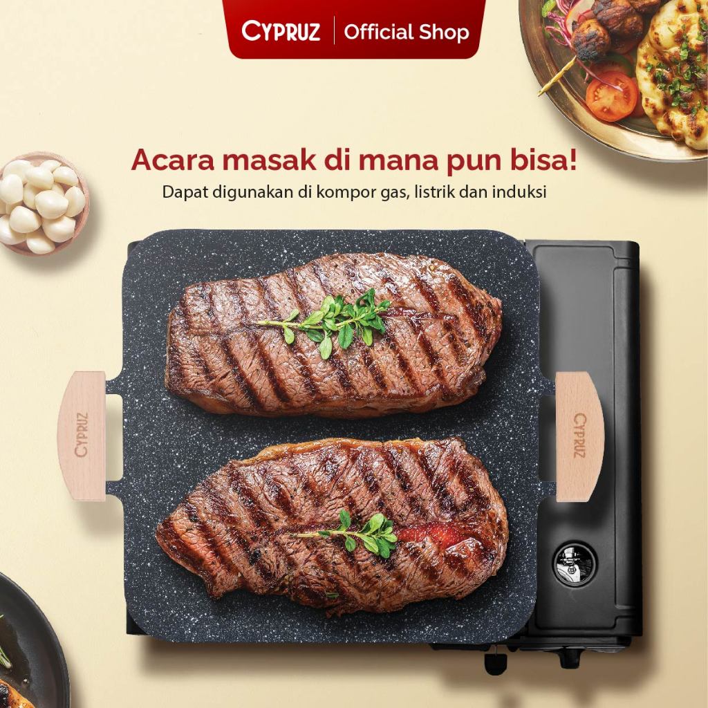 Cypruz Alat Pemanggang Anti Lengket dan Mudah Dibersihkan Horizontal BBQ Grill Pan Marble Series