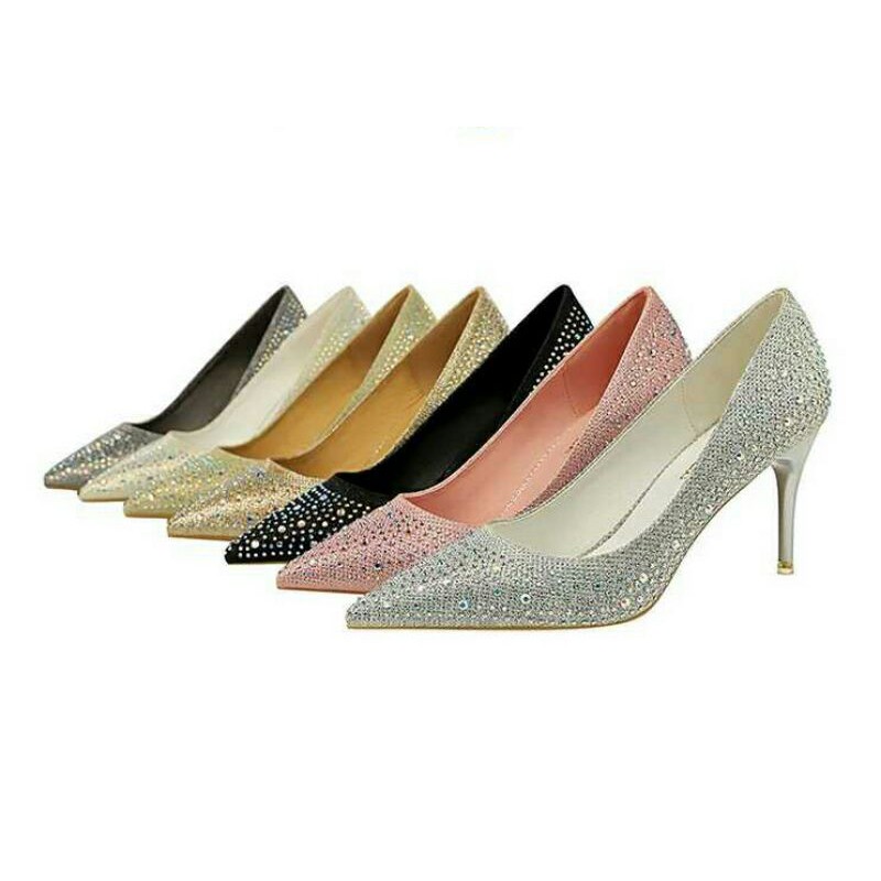 BS-018 7warna,no.34-43 Heels pesta impor sepatu pesta wanita heels gold wedding shoes