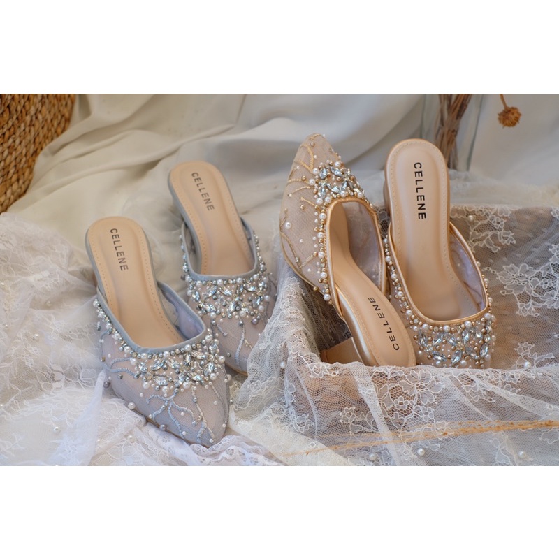 Cellene Kala Beads Heels 4 Warna / Wedding Shoes Payet 5Cm