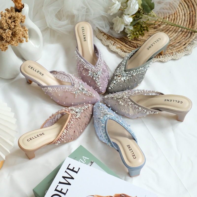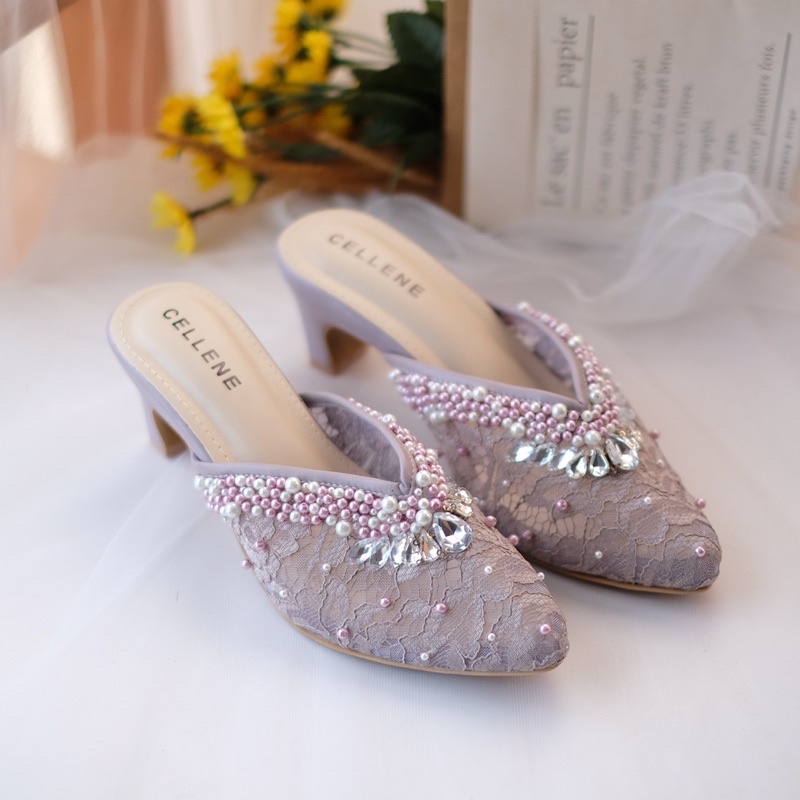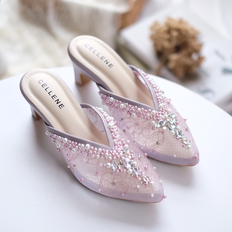 CELLENE Vlorae Beads Heels 5cm / wedding shoes sepatu pengantin payet mocca 5cm
