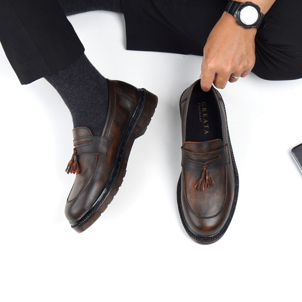 Oscar Camel |Mnm X Greata| Sepatu Loafers Pria Docmart Formal Shoes Pantofel Kantor / Kerja Ori