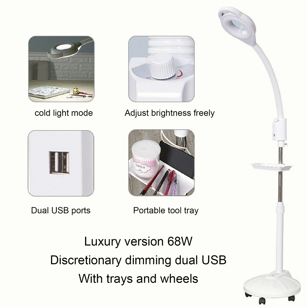 Lampu Facial LED alat kecantikan klinik yang fleksibel tidak memiliki bayangan, kaca pembesar, magnifiying lamp, cocok untuk klinik kecantikan