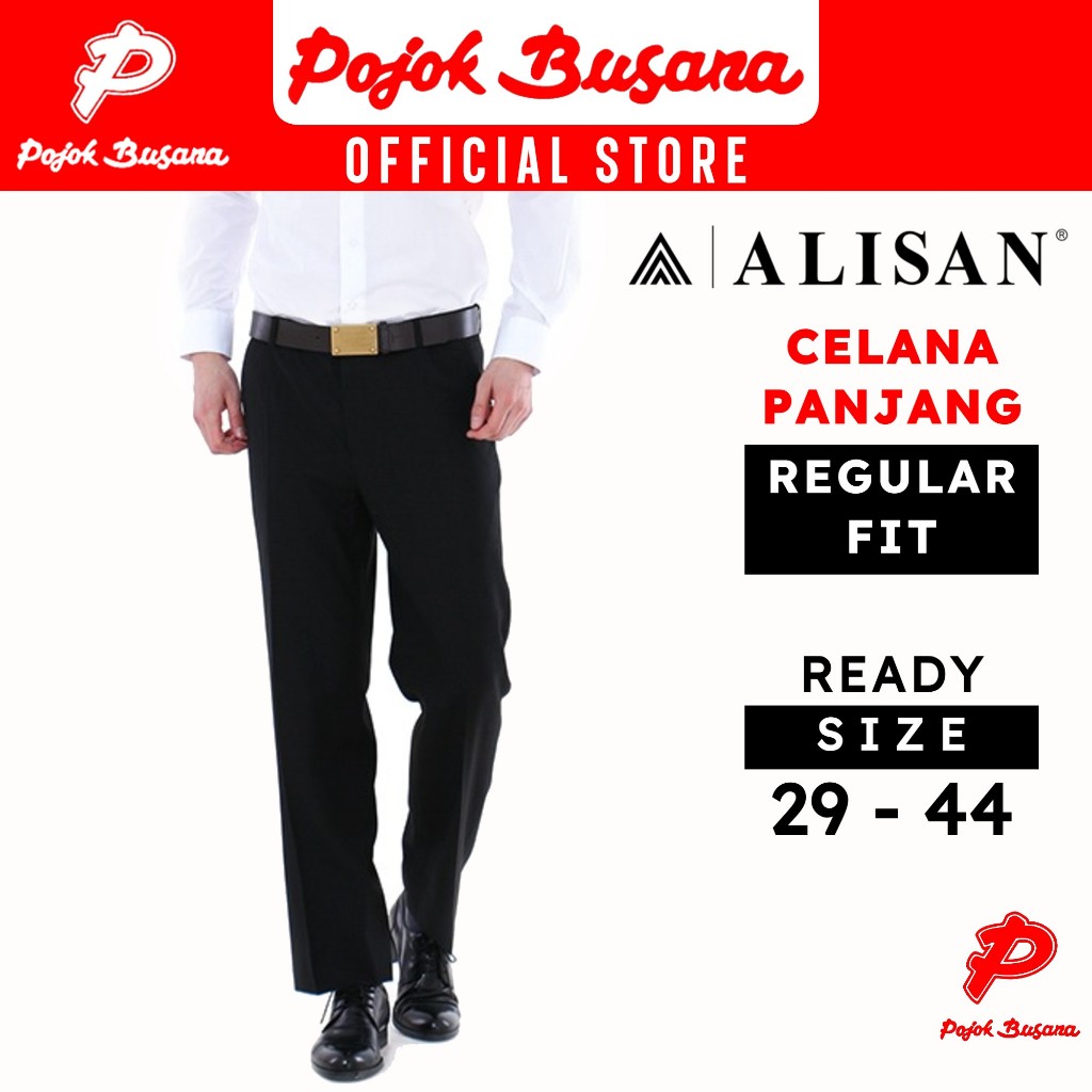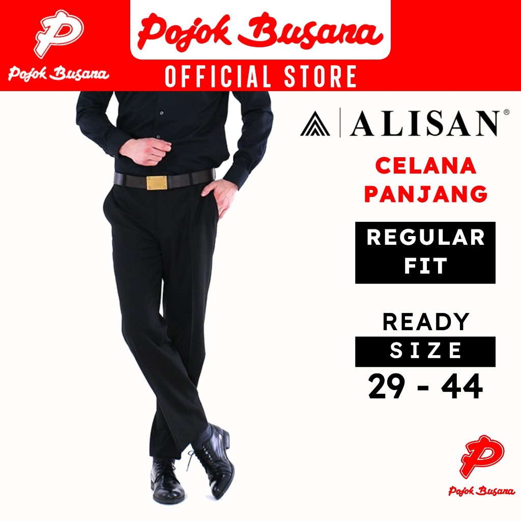 Pojok Busana Celana Panjang Formal Alisan Reguler Fit Pria - Bawahan Kerja Kantor Acara Bahan Hitam