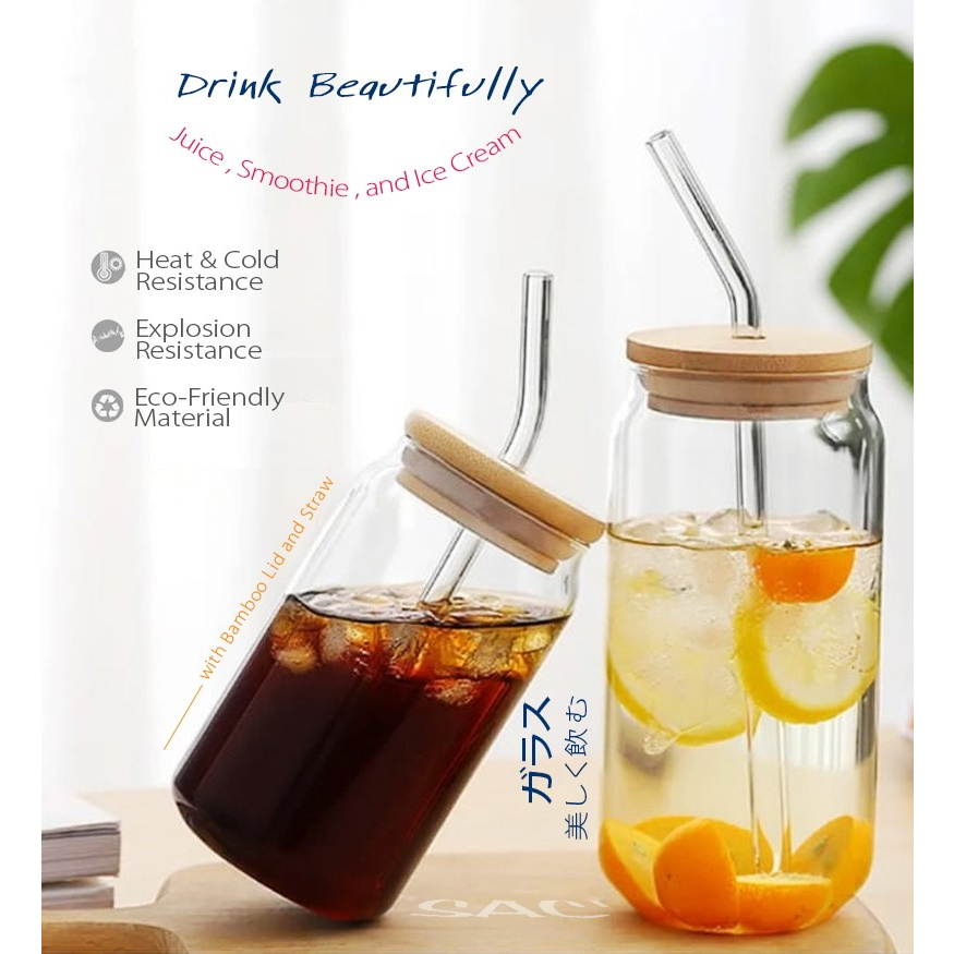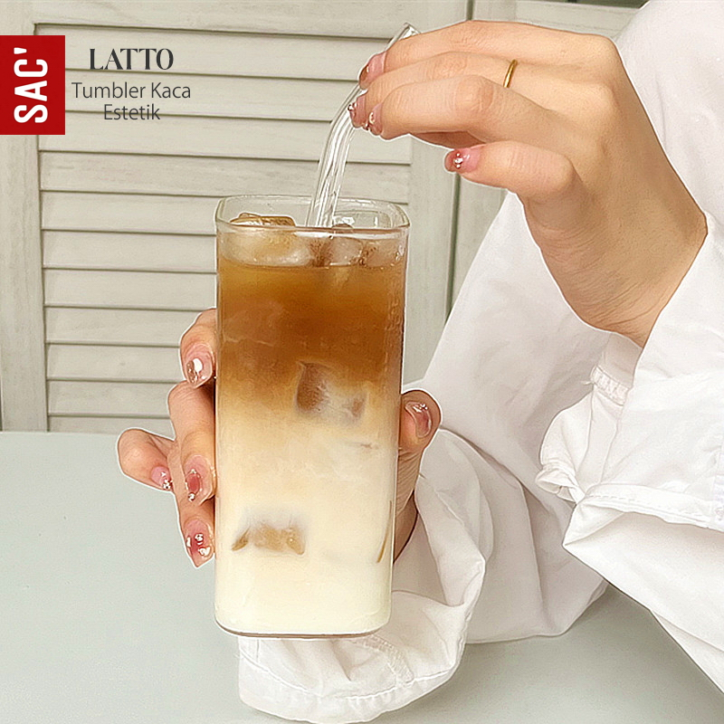 LATTO Gelas Kaca Estetik Minum Kopi Susu Jus Gelas Tumbler Kaca Sedotan Mug Lucu Gelas Estetik Tumbler Minum Gelas Match