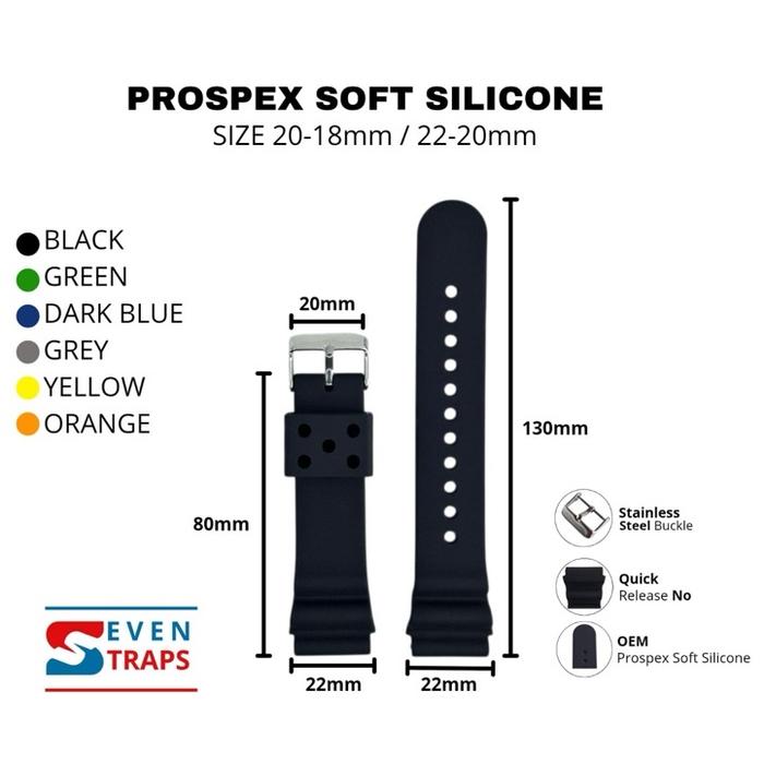 [Star] TALI JAM DIVER PROSPEX SOFT SILICONE UNIVERSAL RUBBER STRAP 20mm 22mm - Hitam, 20 mm