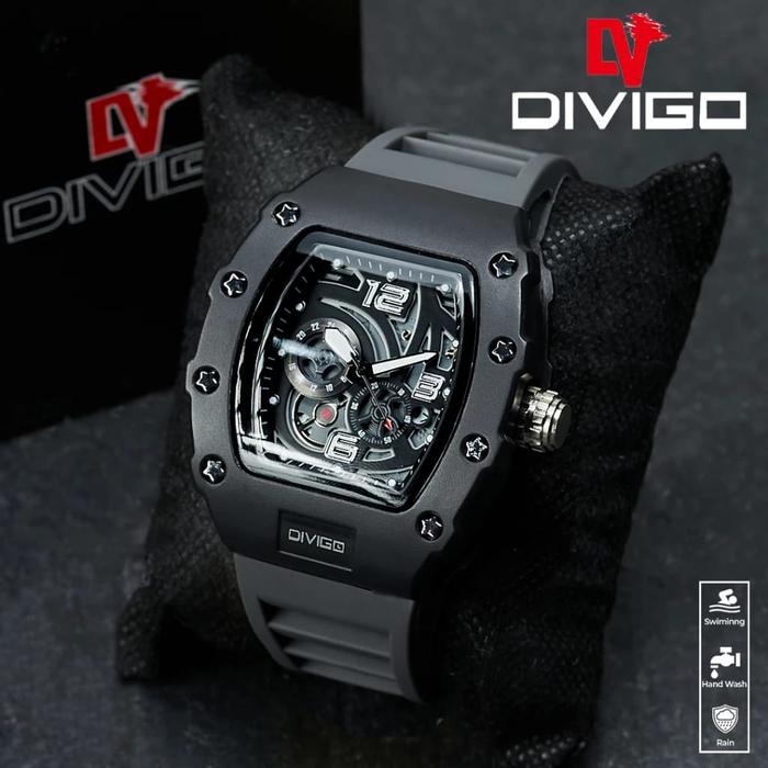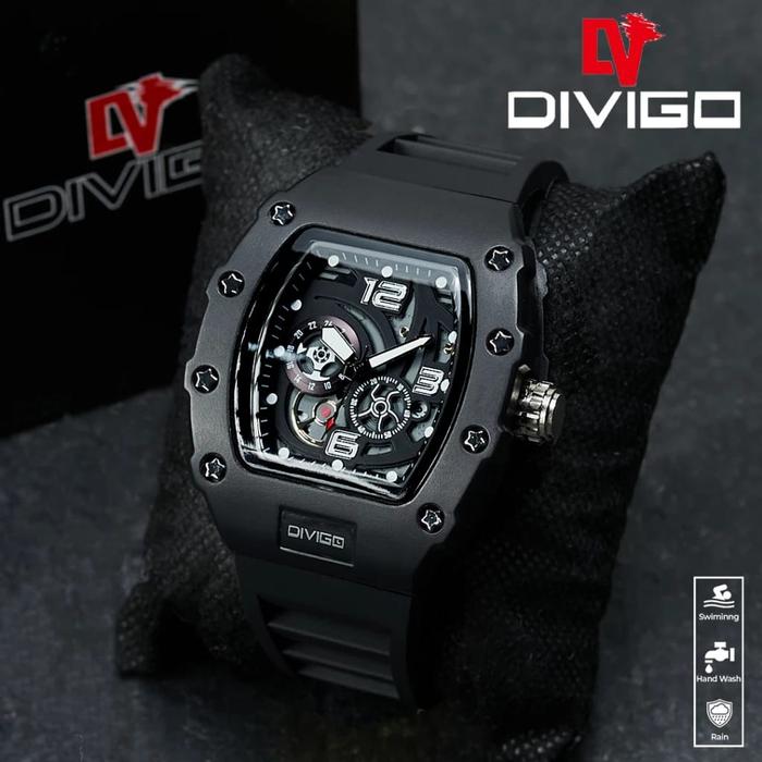[Star] Jam tangan Divigo RM DV-2304 Analog Sport Original Tahan Air Strab Rubber Tanggal Aktif - hitam