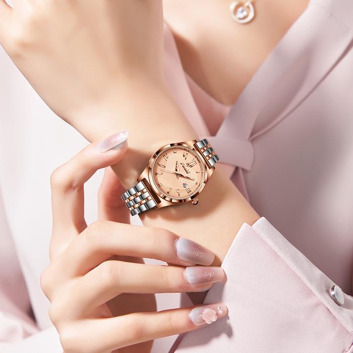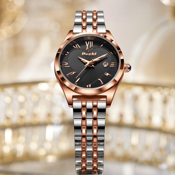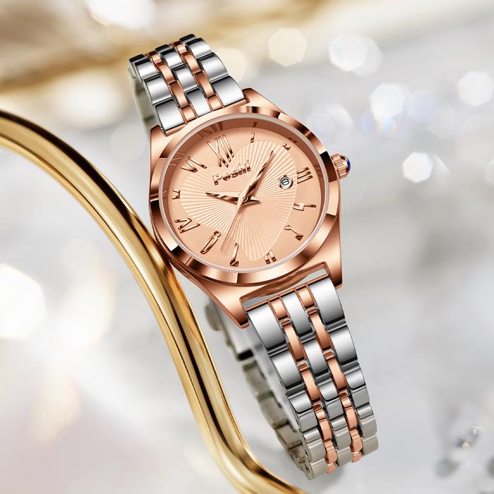 [Star] (002 harga telah diganti, cepat beli) Jam Tangan Wanita Poshi Tahan Air dengan Tali Stainless Steel dan Dial Biru