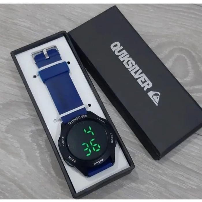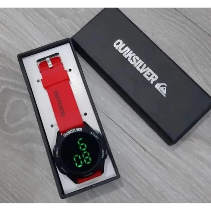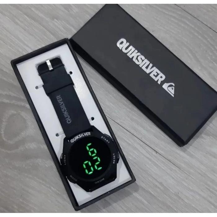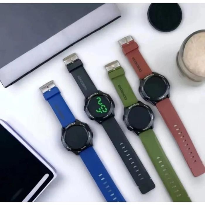 [Star] Ready Stok - Jam Tangan Pria Quiksilver Digital Tali karet Jam Tangan Model Sporty Cowok Water Resistant - Abu -