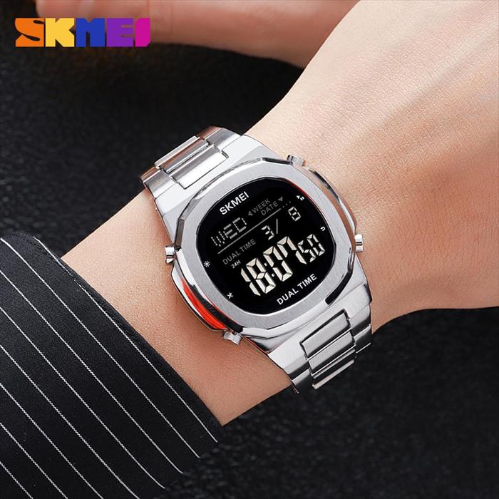 [Star] Jam Tangan Digital Pria SKMEI 2004 LED Anti Air Original Stainless Watch - Hitam Hitam