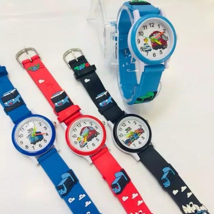 [Star] Jam Tangan Anak-Anak Pria Timbul Tayo Umura 1/7 TH Strap Rubber/Karet(Dikirim Jakarta Terima - Hitam-Timbul Tay