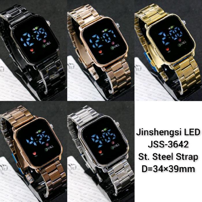 [Star] Jam tangan led Jinshengsi JSS 3642 steel strap unisex free carton box - brown steel 3642