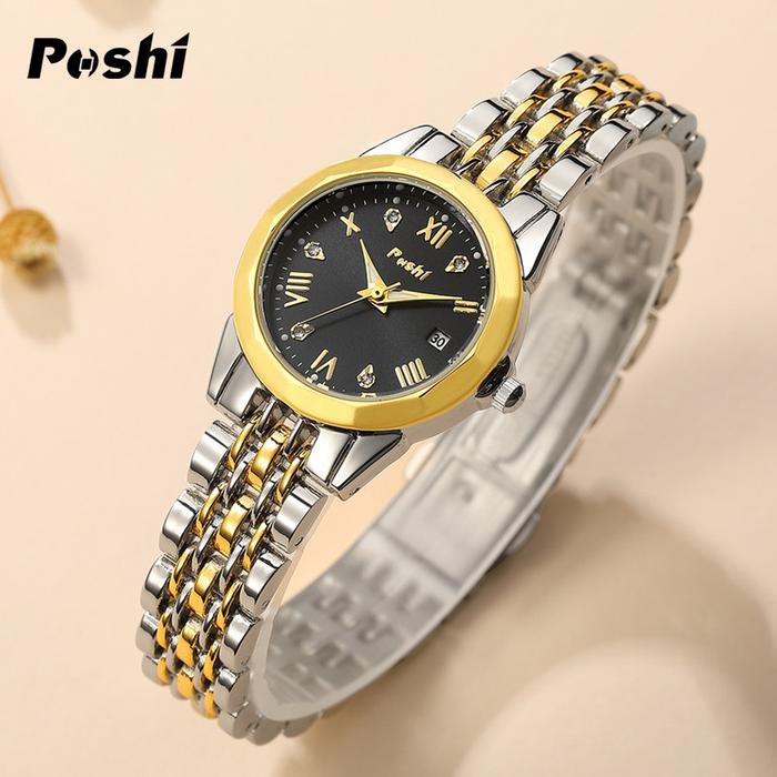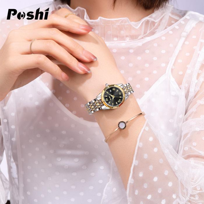[Star] (002 harga telah diganti, cepat beli) Jam Tangan Wanita Poshi Tahan Air dengan Tali Stainless Steel dan Dial Biru