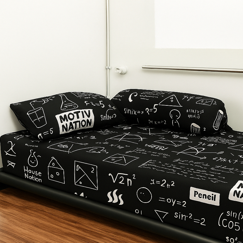 Sprei motif rumus | Karet Anti geser | ukuran 90-200 | tinggi 20,30,40 | set sarung bantal & guling