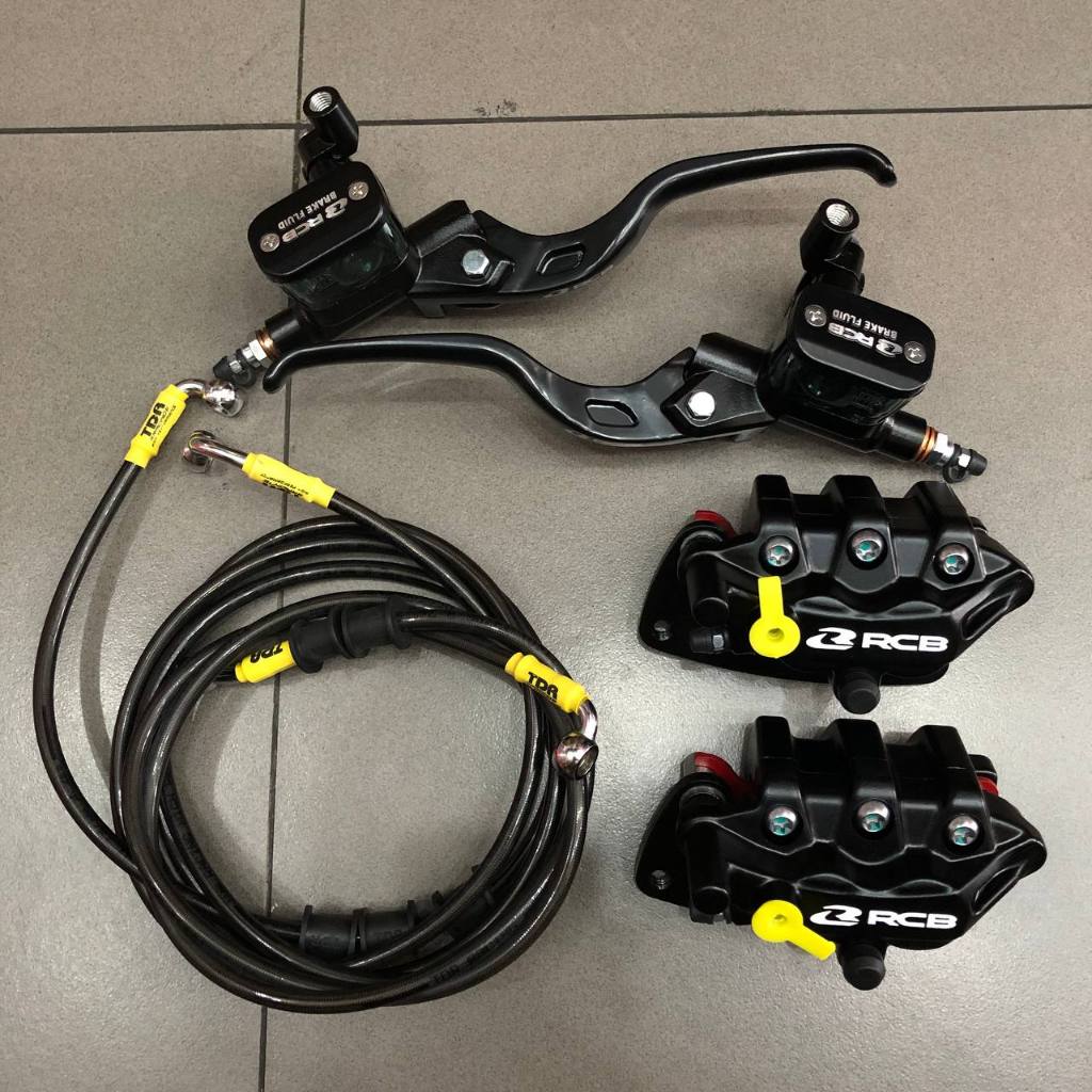 Paketan Master Rem RCB E3 14mm Set Kanan Kiri + Kaliper RCB S Series 2 Piston + Selang Rem TDR Package Black Carbon Nmax