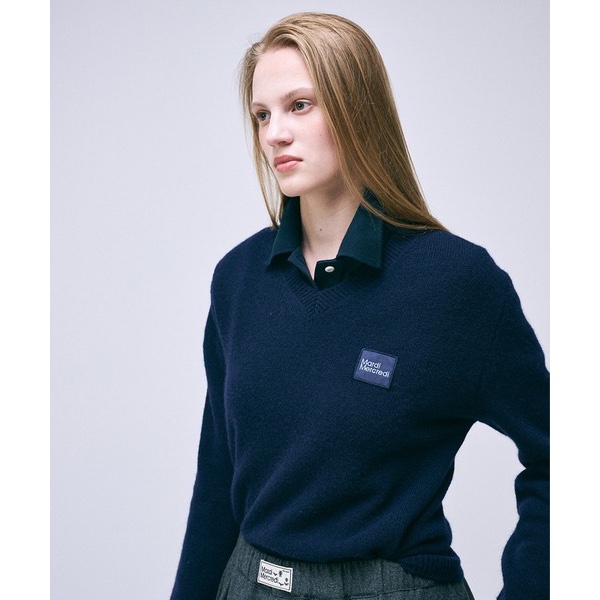 MARDI_RACCOON BLENDED V NECK SQUARE LOGO_NAVY