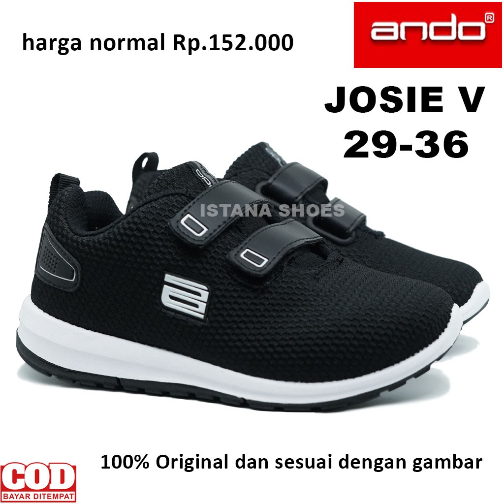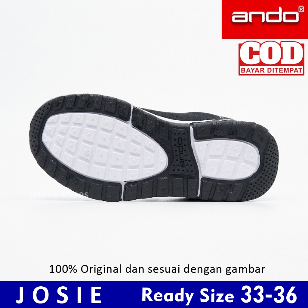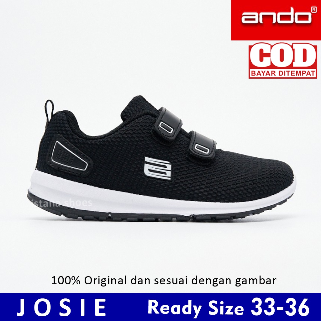 Sepatu Anak Sekolah Perempuan Laki Laki Cowok Cewek Ando Josie Hitam Putih PAUD TK SD Perekat Sneakers