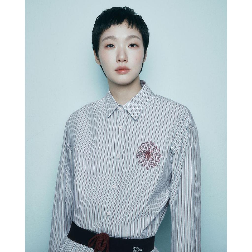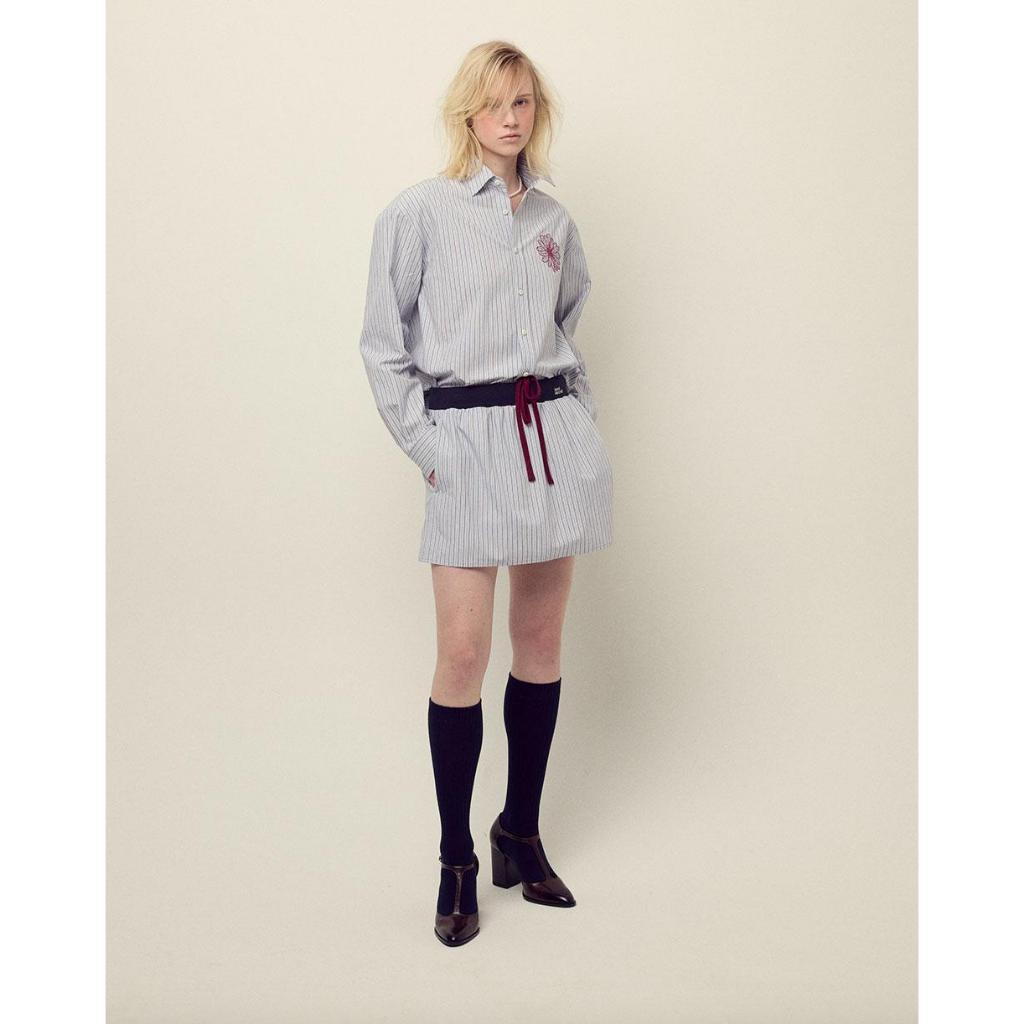 [Ready Stock] Mardi Mercredi Blue Burgundy Stripe Cotton Shirt - 100 PERSEN Original Korea