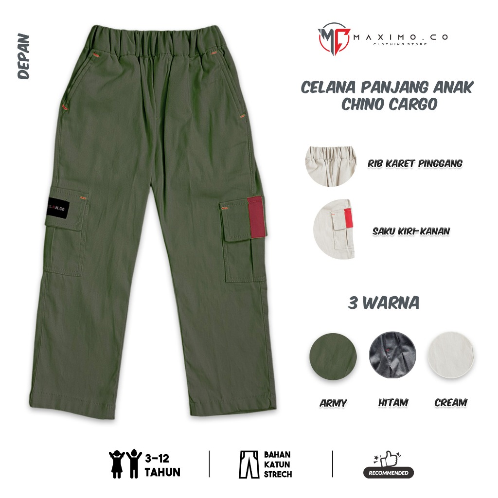 O.Co Celana Panjang Anak Chino Kargo Usia 3-12 Tahun Bahan Katun Strech