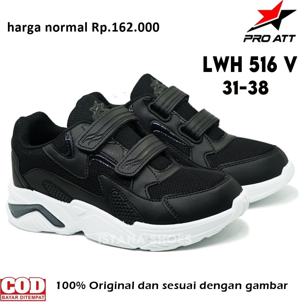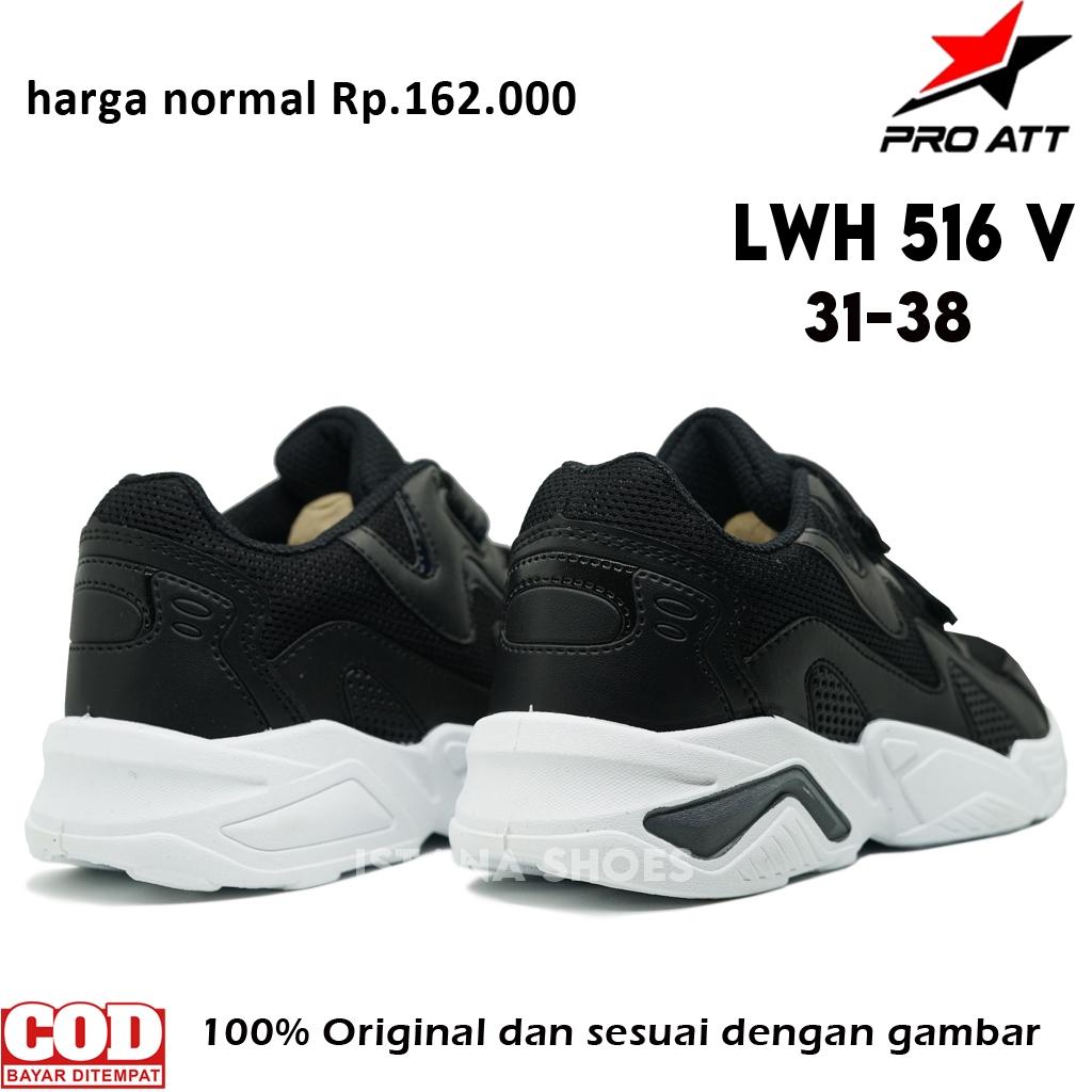 Sepatu Sekolah Anak Laki Laki Perempuan PAUD TK SD SMP PRO ATT LWH 516 V HITAM PUTIH Perekat Sneakers Casual
