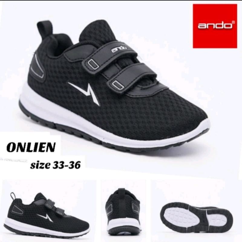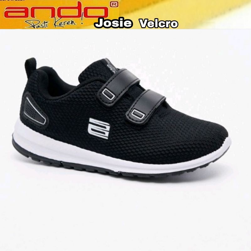 ANDO Sepatu Sekolah Anak Kecil Remaja Perempuan Velcro Perekat Tempel Hitam Putih Size 31sd 36 Original Murah Berkualita