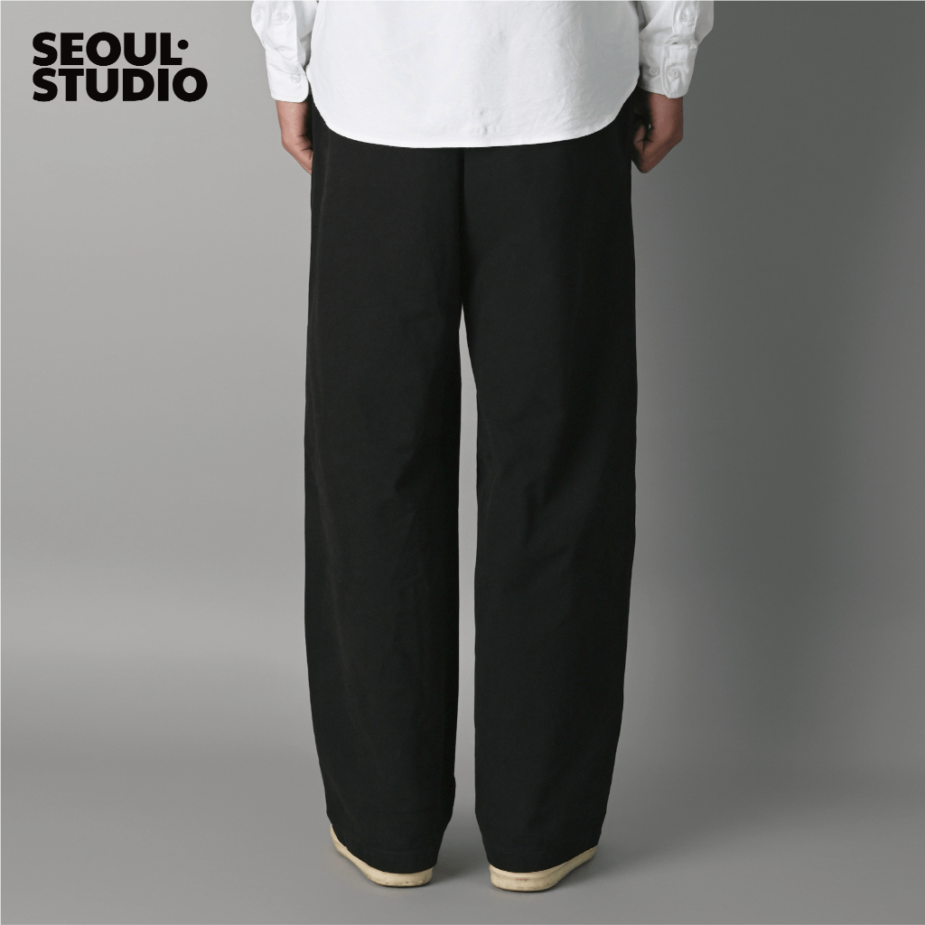 [SEOUL STUDIO] JONGNO Loose Fit Chinos (Black) | Baggy Chino Pants Celana Panjang Twill Cotton Jeans