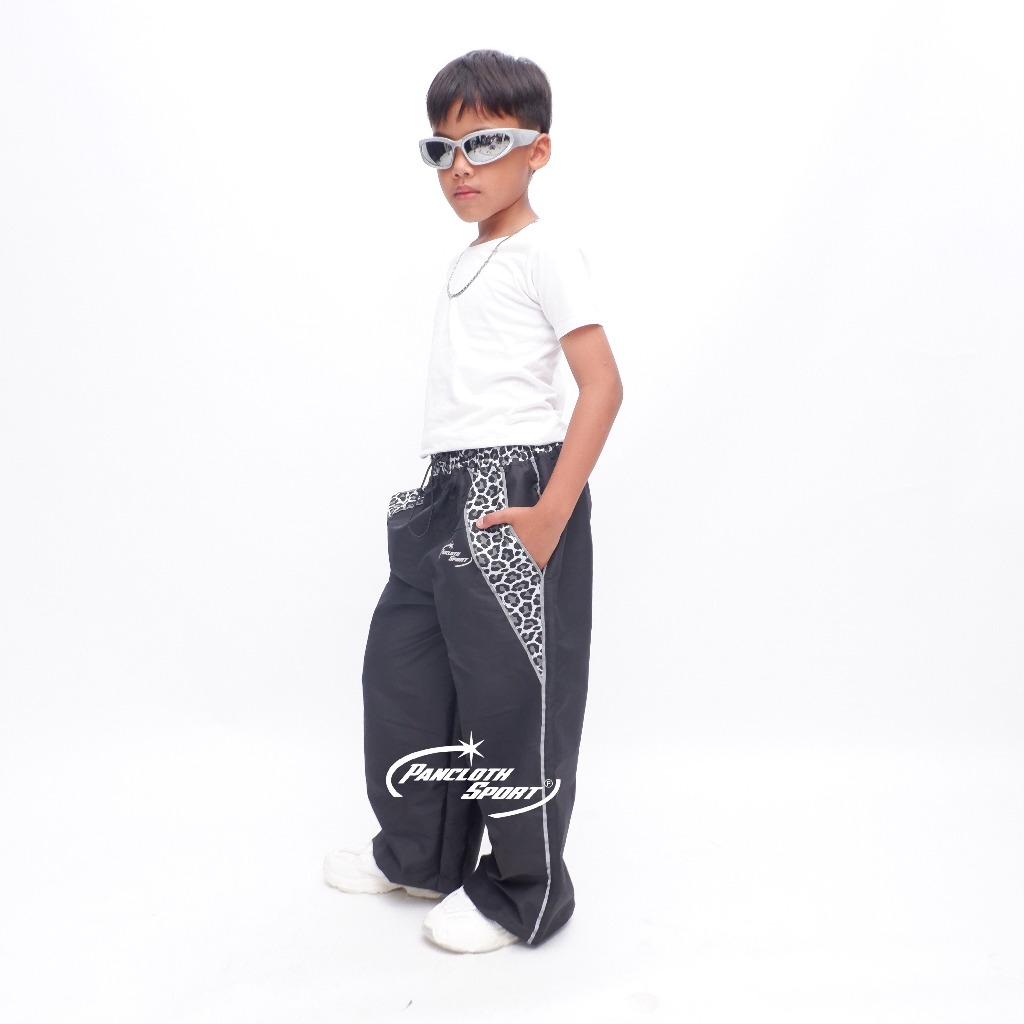 Pancloth Sport Y2K Baggy Pants Motif Leopard Anak / Celana List Reflective Anak