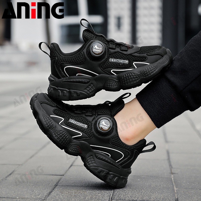 ANING ANINGBOY-Sepatu anak-anak sepatu kets dasi bebas hitam sepatu sekolah yang lembut dan menyerap keringat