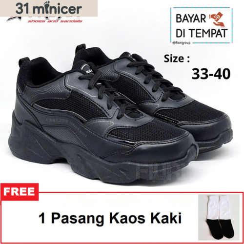 PRO ATT ORIGINAL - SEPATU SEKOLAH ANAK COWOK CEWEK LIP 504 33-40 FULL HITAM - SNEAKERS BERTALI