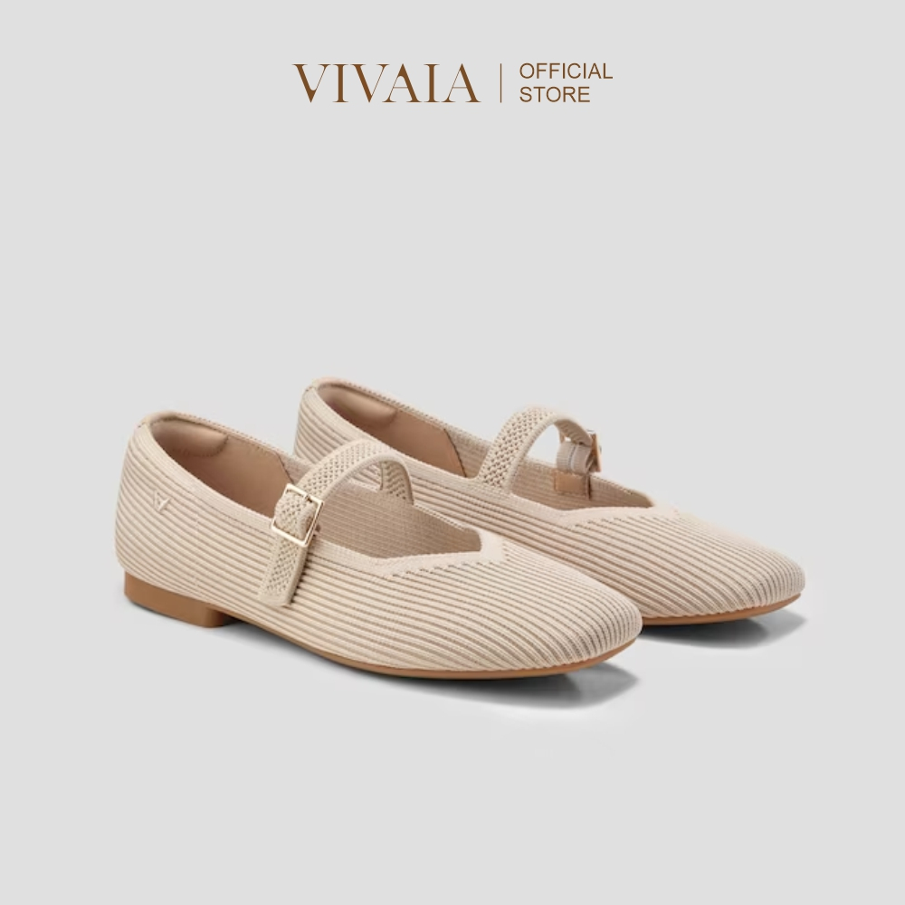 VIVAIA Sepatu Wanita Square-Toe Mary-Jane (Margot Mary-Jane) - Almond (WIDE)