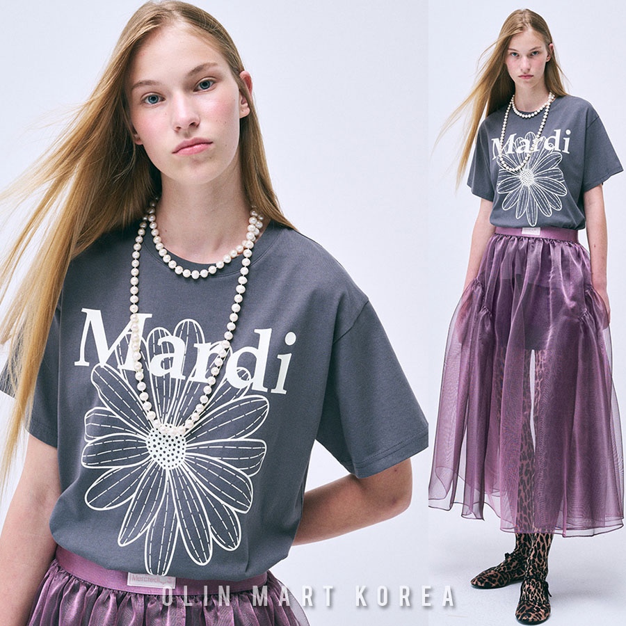 MARDI Tshirt Flowermardi Charcoal Ivory Katun Korea