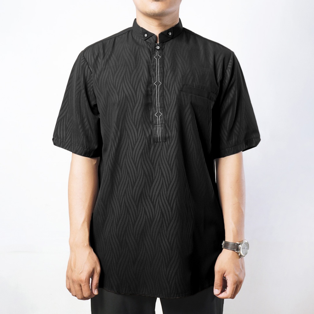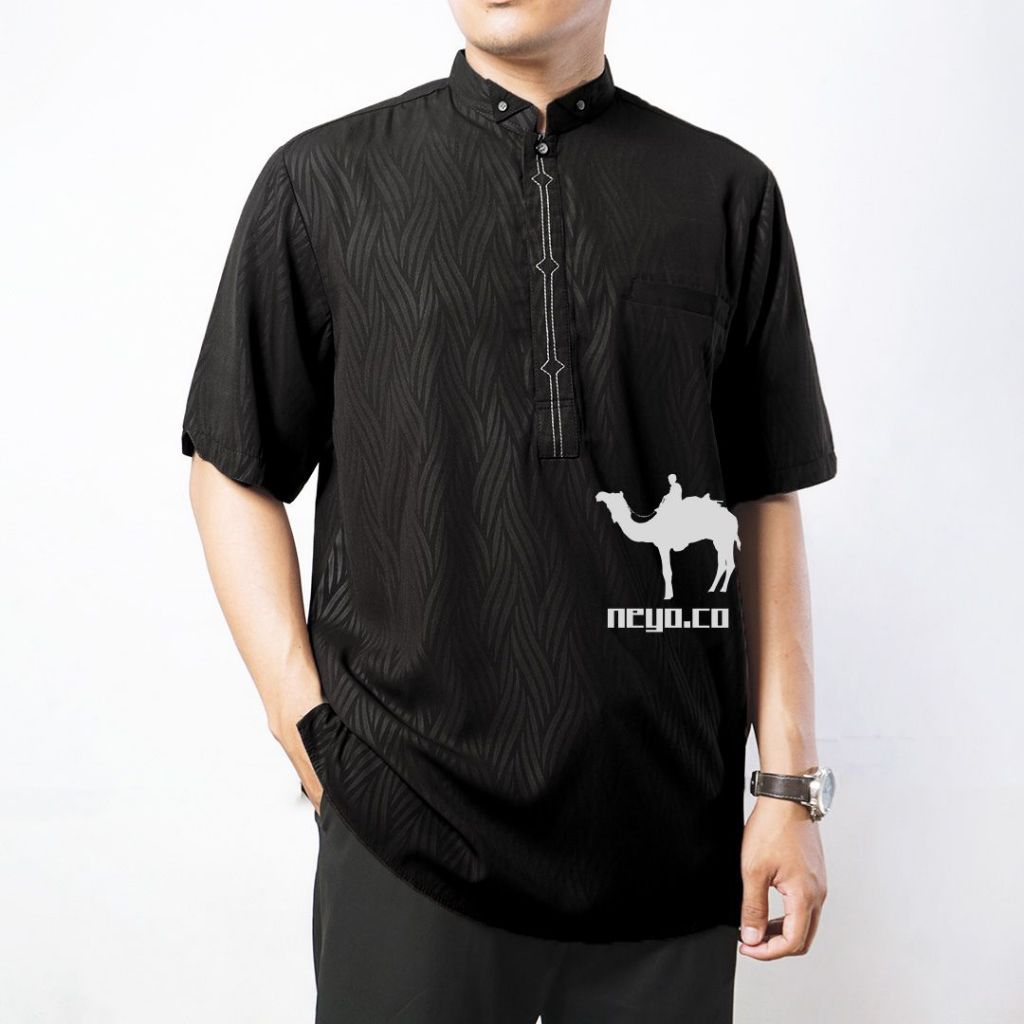 Neyo.Co - Kemeja Koko Atasan Muslim Emboss Lengan Pendek Kurta Pakistan Premium