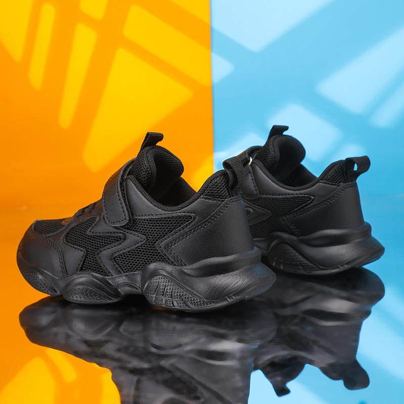 ANINGAINGBOY-Sepatu Sekolah Anak Ukuran Sneakers Hitam Velcro sepatu anak-anak 28-37 Full Hitam