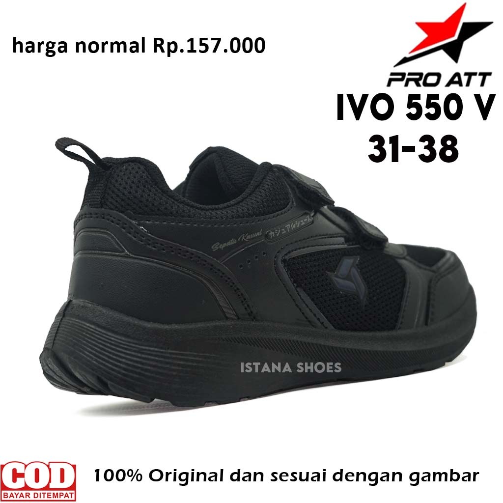 Sepatu Sekolah Anak Laki Laki Perempuan PAUD TK SD SMP Hitam PRO ATT IVO FULL BLACK Perekat SNEAKERS