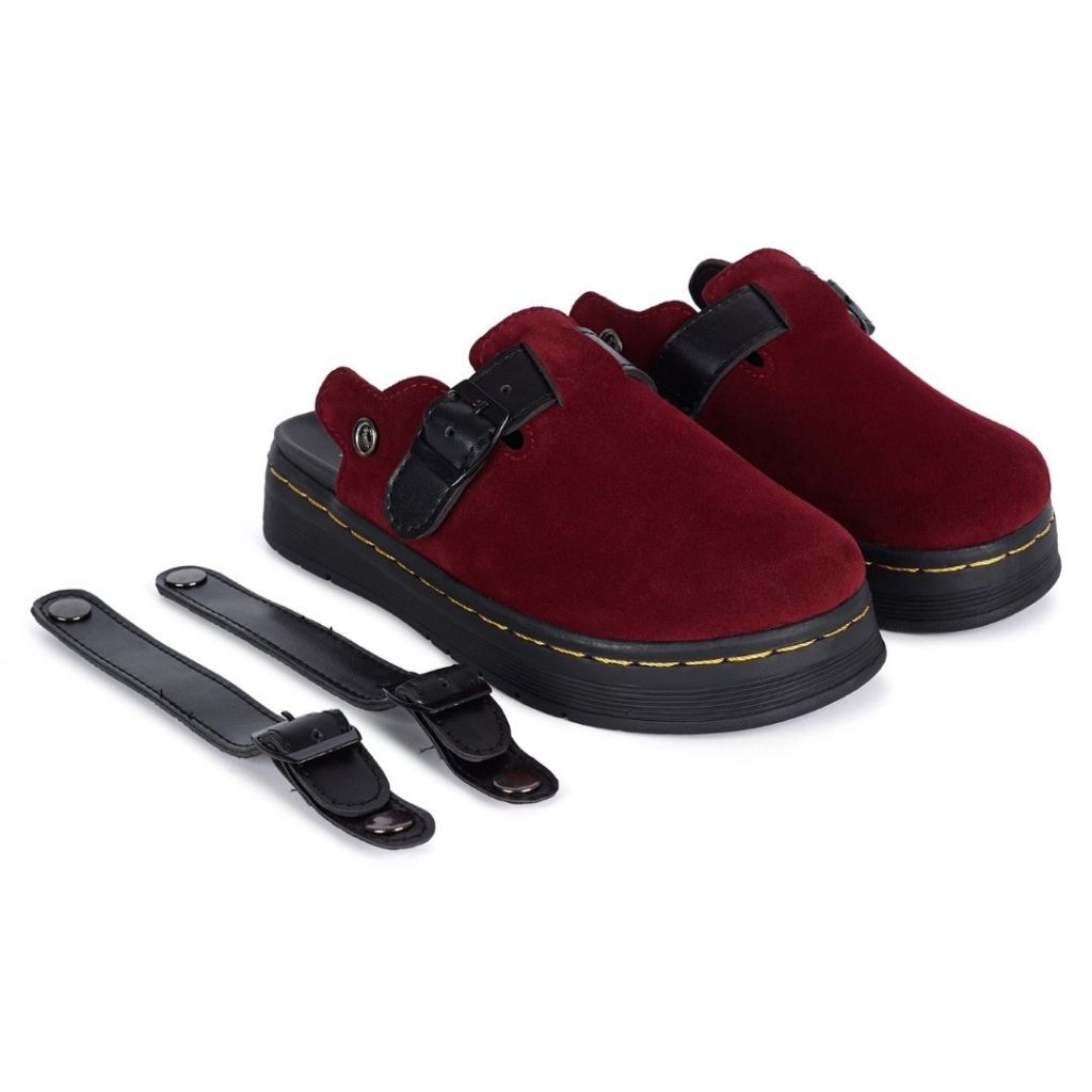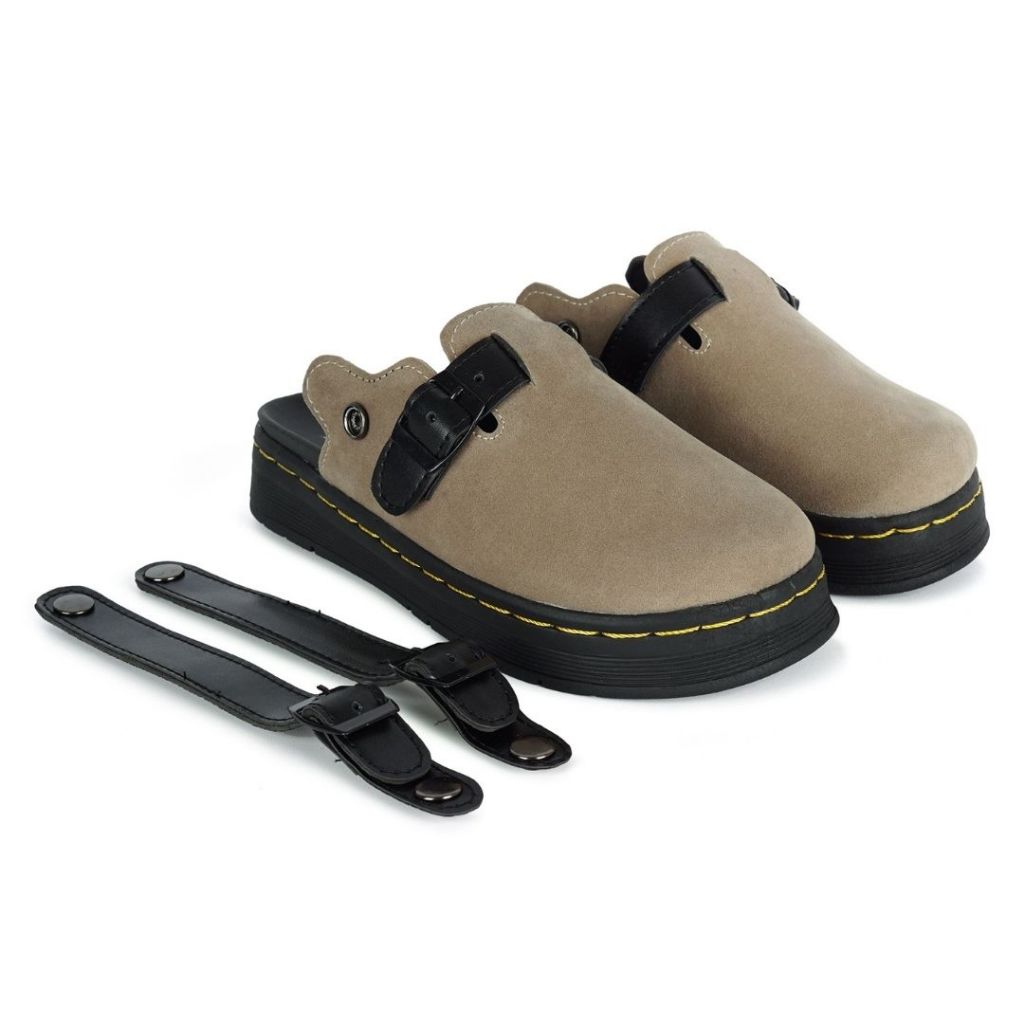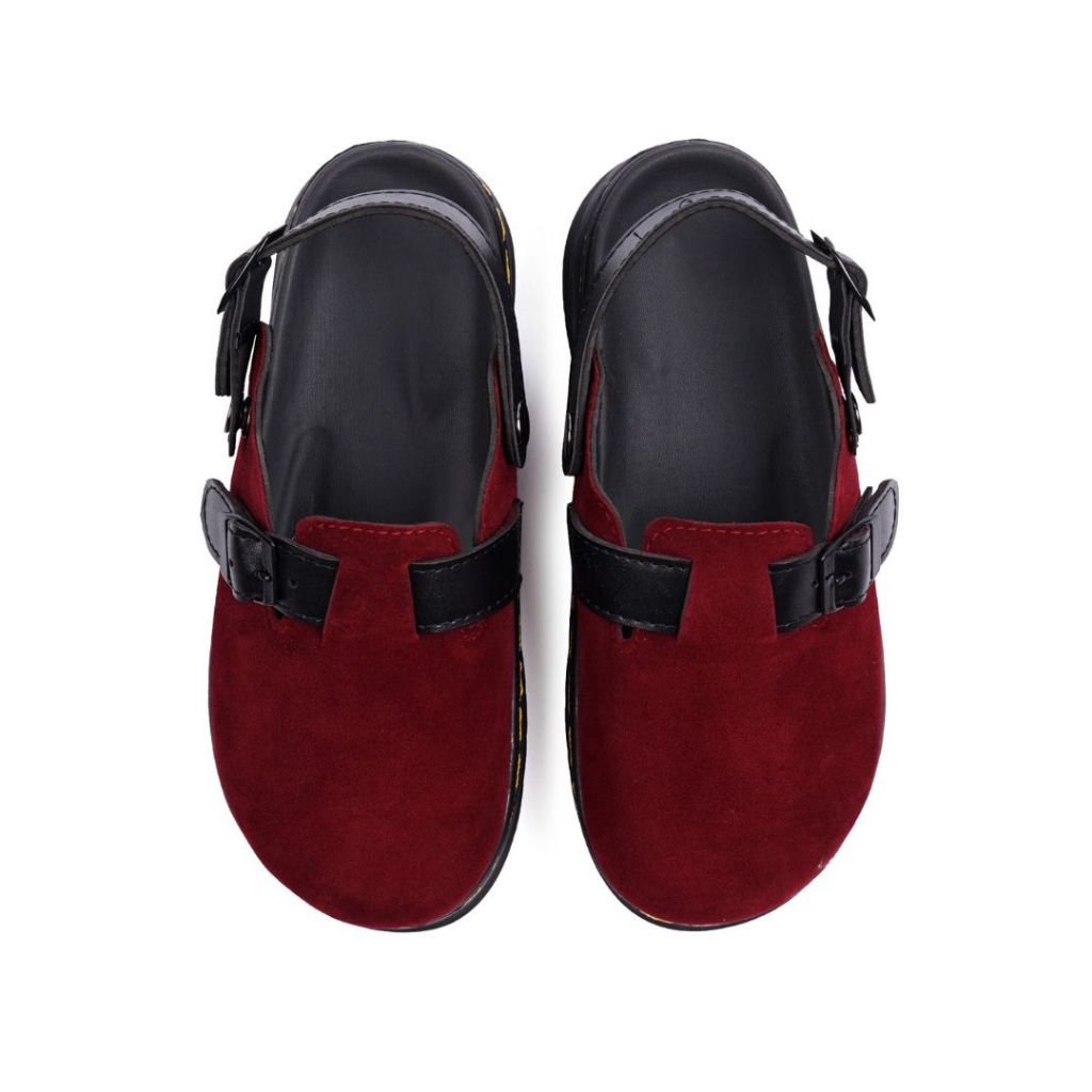 Rahas - Sandal Kulit Casual Slide Clog Unisex Hitam, Krem, Maroon