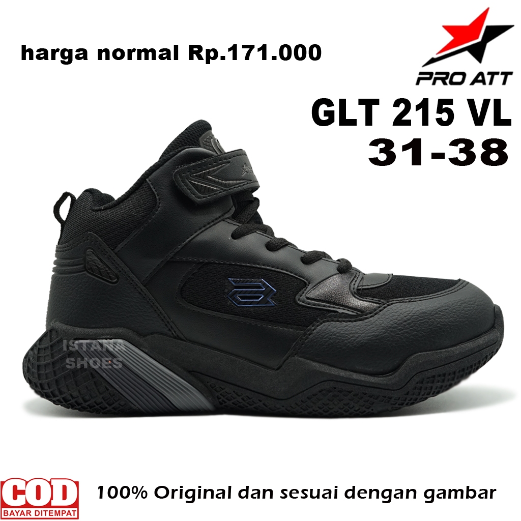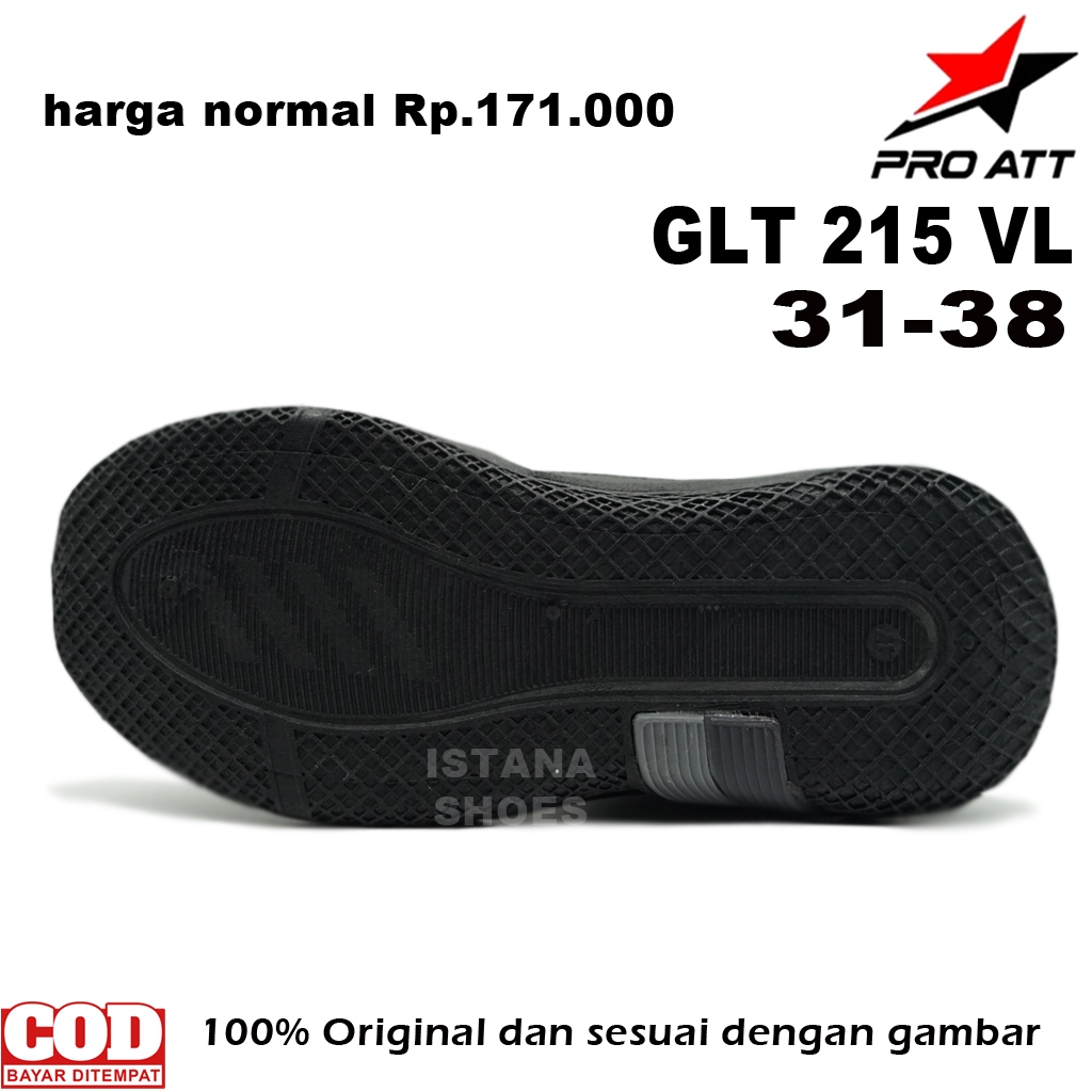 Sepatu Sekolah Anak Laki Laki Perempuan PAUD TK SD PRO ATT GLT 215 VL Perekat Tali Full Hitam Boots
