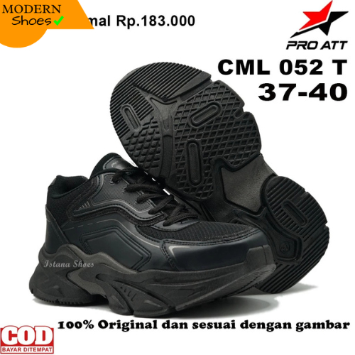 SEPATU PRO ATT CML 052 TALI, SEPATU HITAM POLOS,,SEPATU ANAK SEKOLAH CEWEK SMP DAN SMA ,