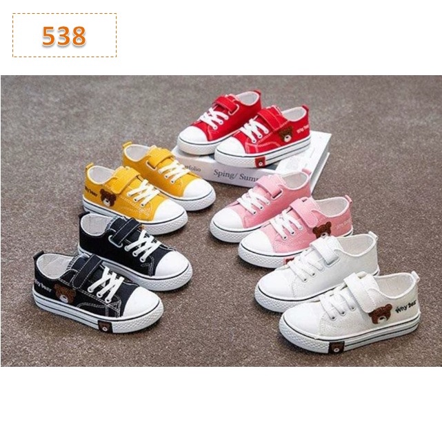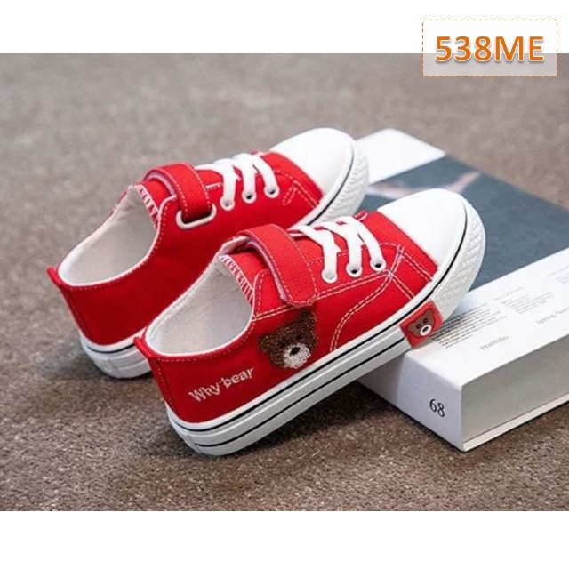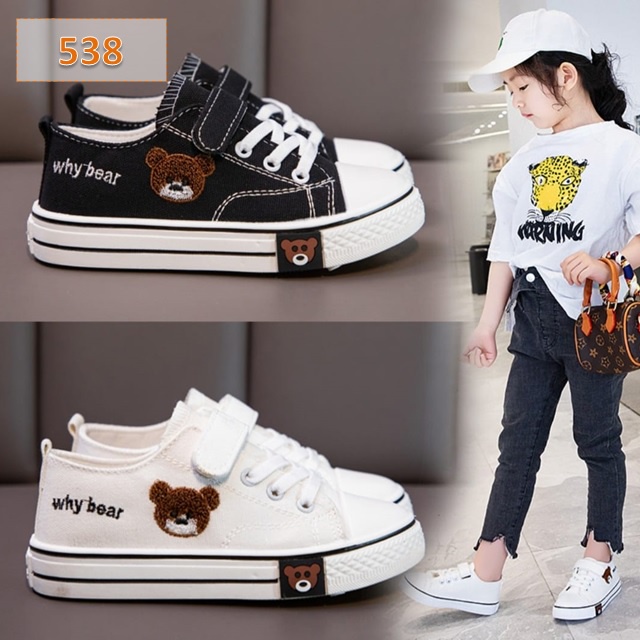 Jejak Sepatu Sneakers Anak Kanvas Bordir Why Bear Velcro Tali Kasual Unisex Ukuran 26-35 (AS175)