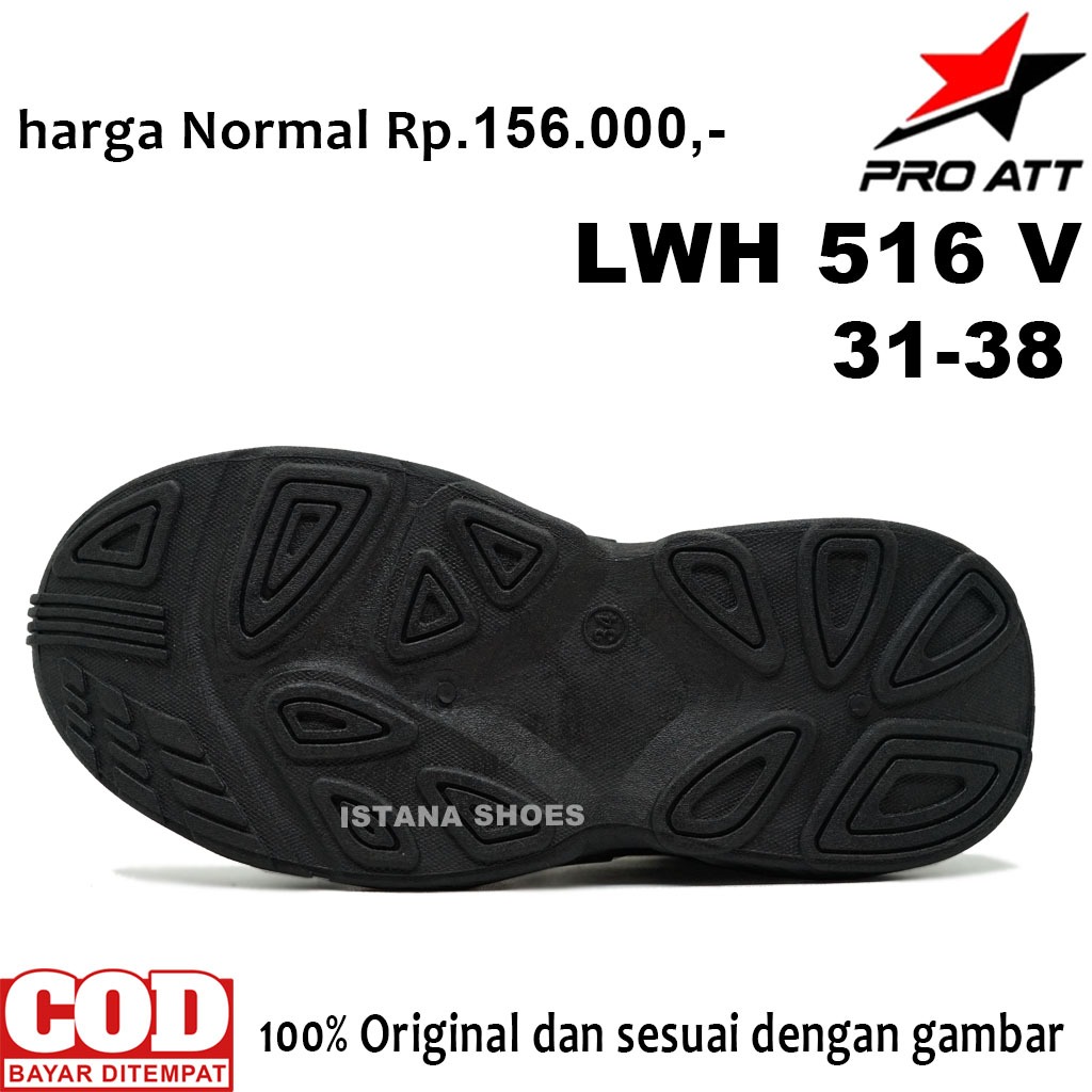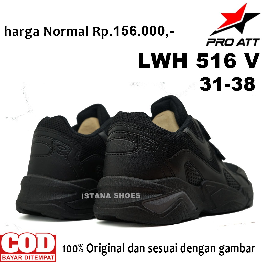 Sepatu Sekolah Anak Laki Laki Perempuan PAUD TK SD SMP PRO ATT LWH 516 V FULL HITAM Perekat Sneakers Casual