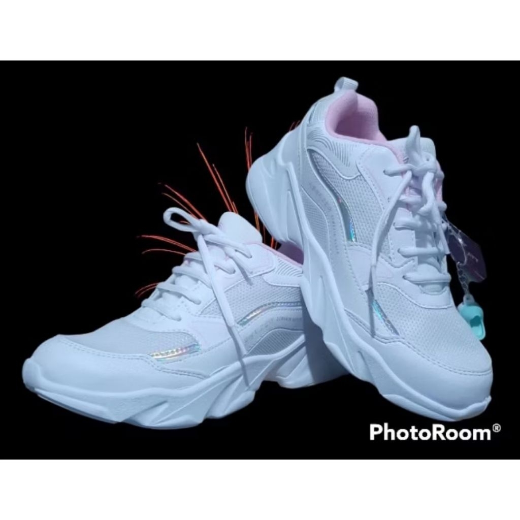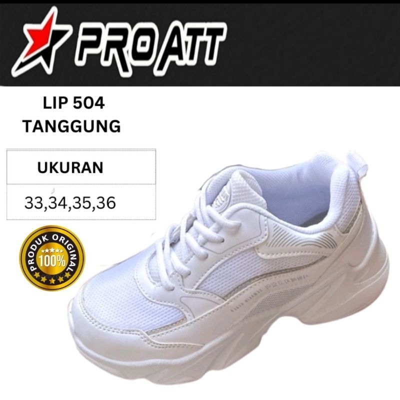 PRO ATT Sepatu Sneakers Sports Olahraga Sekolah Anak Remaja Cewek Putih Tali Kekinian Lip White Karet Size 33-38