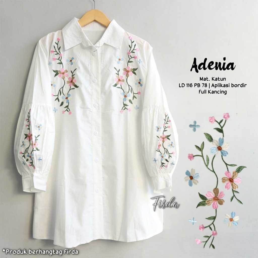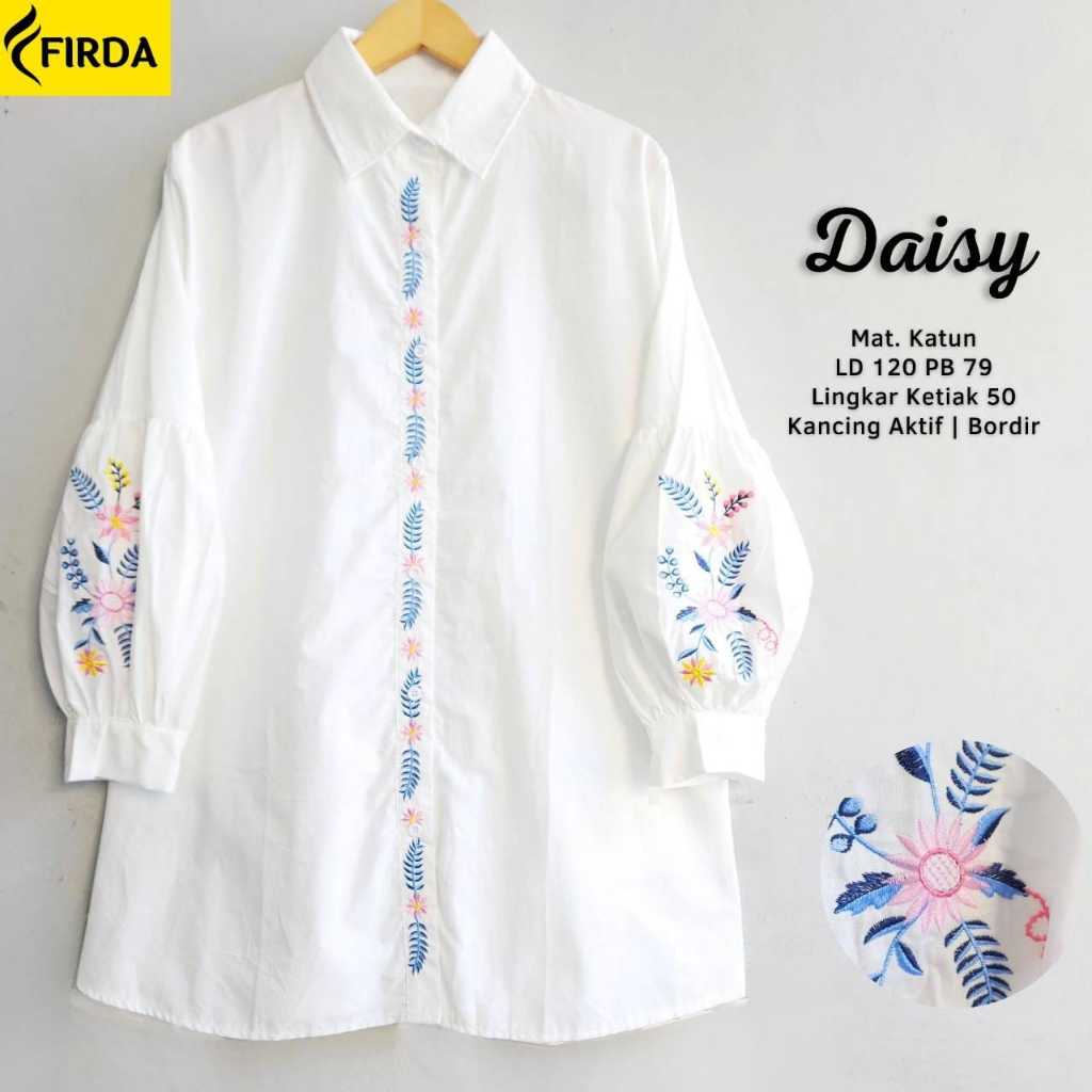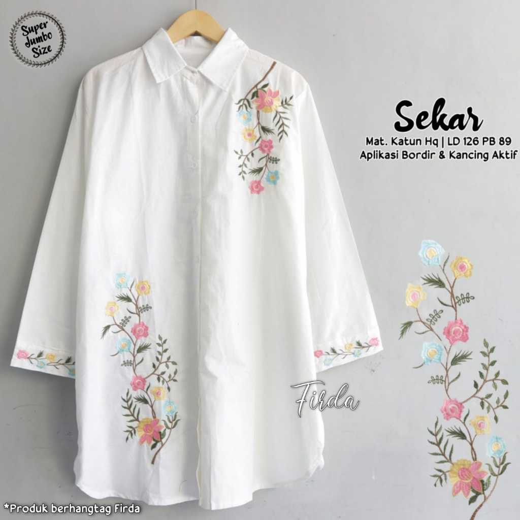 Restock Alysa Jumbo Tunik Kemeja Putih Bordir Bunga Premium Ld 118 Pj 78 Kancing Aktif Bestseller