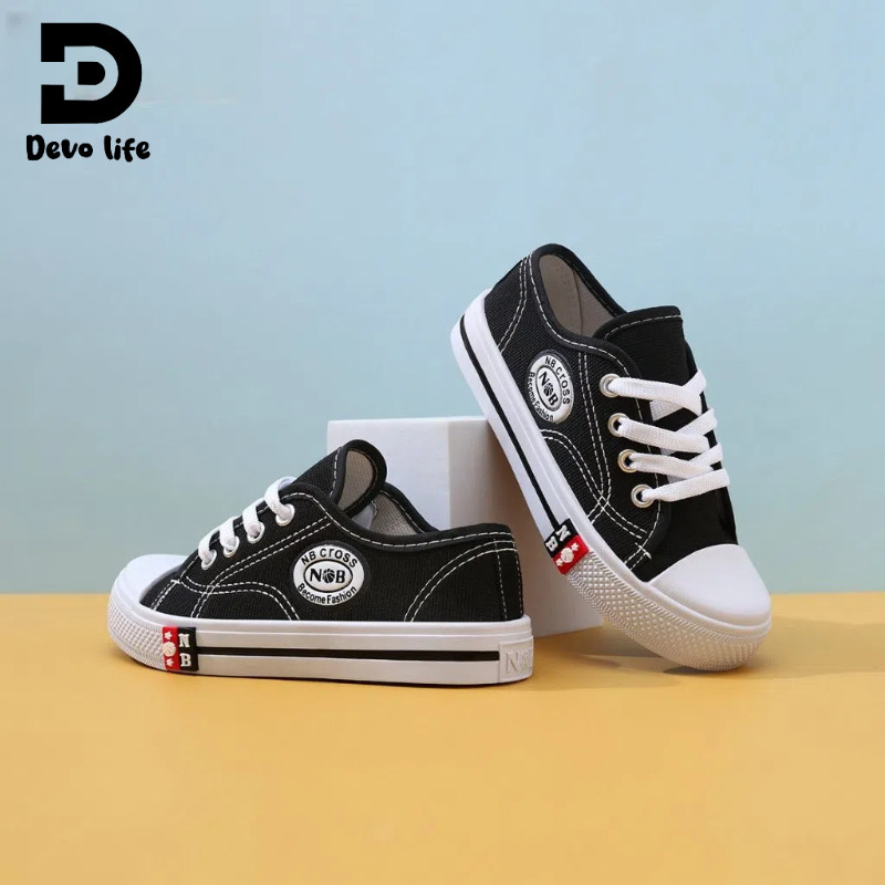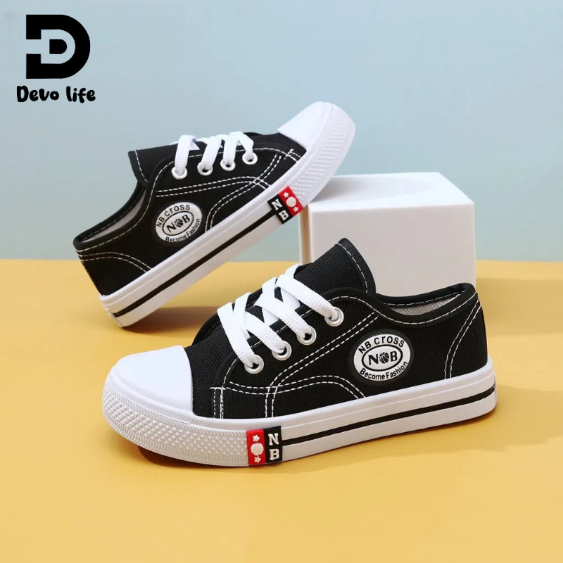 Devo Life - Sneakers Anak Low Kiddy Cewek Cowok | Formal Tali Bahan Canvas Sneakers Sekolah