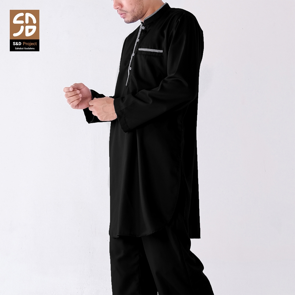 S&D Project Setelan Muslim Toyobo Hitam Jumbo S-4Xl Pria Dewasa Kurta Lengan Panjang Dan Celana