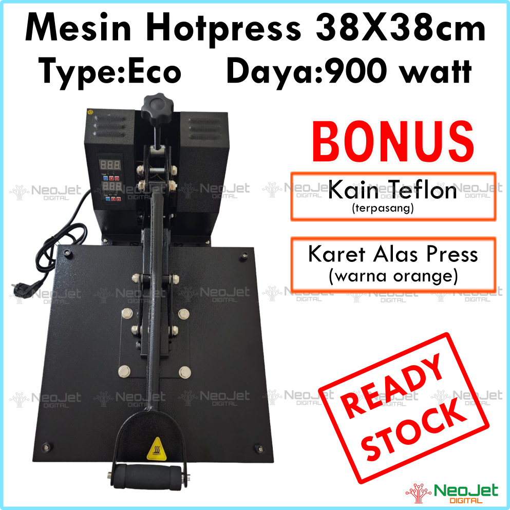 Mesin Hotpress Hot Press Kaos Baju ukuran 38 cm x 38 cm 900 watt Sablon DTF Manual Digital